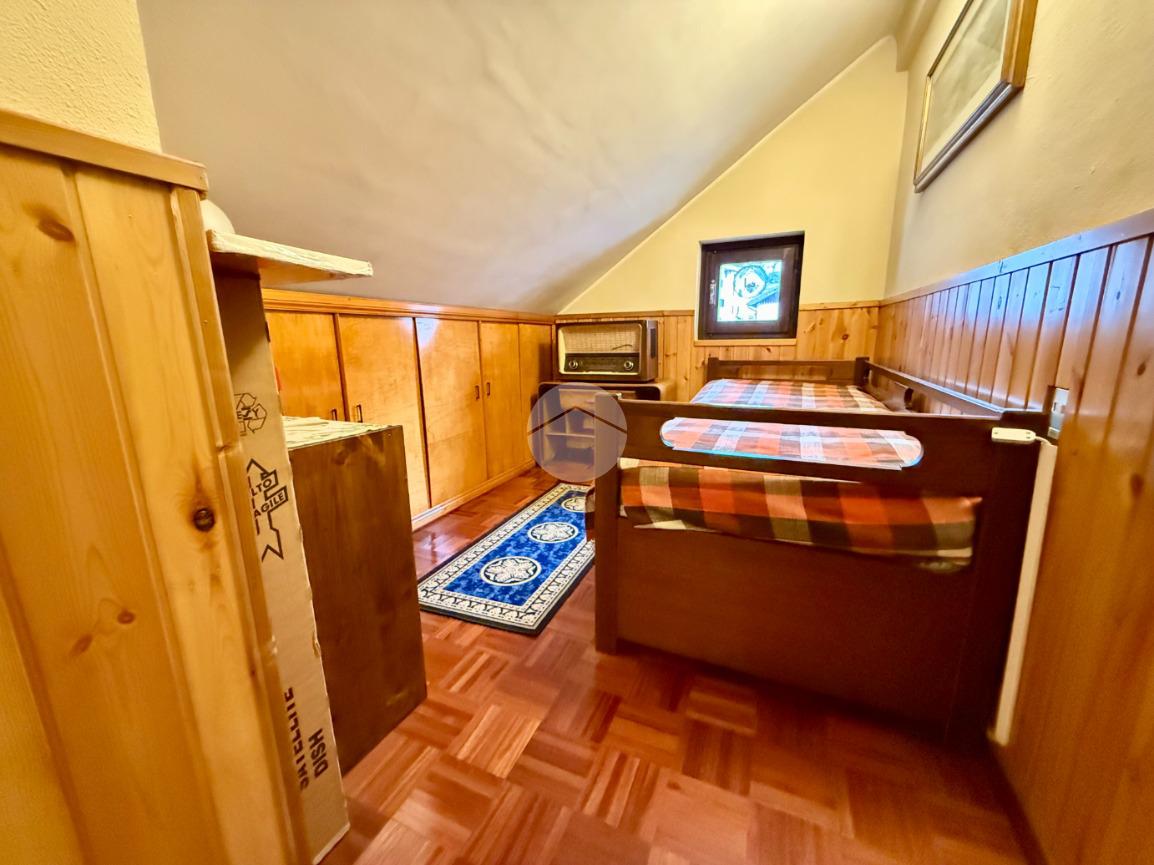 La soluzione è così disposta: entrando troviamo una zona giorno open-space con angolo cottura e camino, proseguendo una camera matrimoniale, una singola con affaccio su comodo balcone panoramico e un bagno con doccia. Salendo troviamo un ulteriore camera da letto singola.