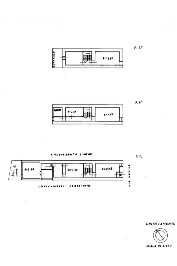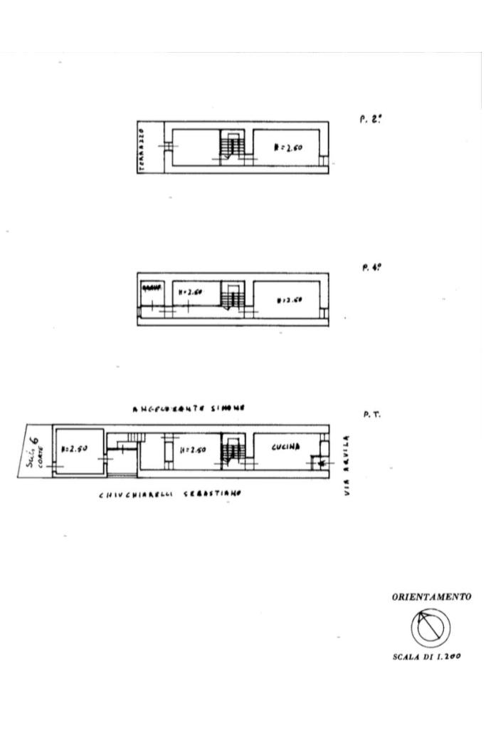 La soluzione è così disposta: entrando ci accoglie una zona giorno con camino, una cucina abitabile con angolo cottura e una comoda cantina. Salendo al piano superiore troviamo una camera da letto matrimoniale, una cameretta singola e un bagno con vasca. Nell'ultimo livello due camere da letto matrimoniali tra cui una con affaccio su terrazzo.
