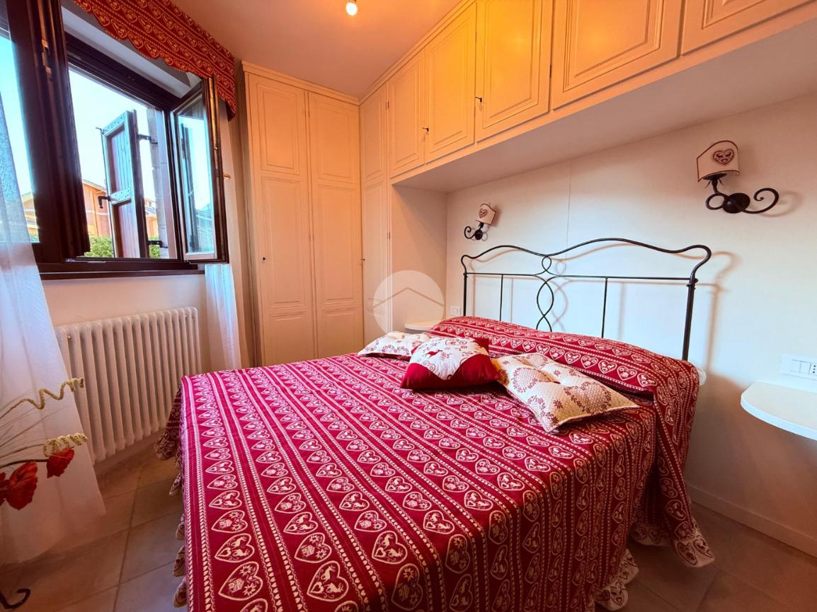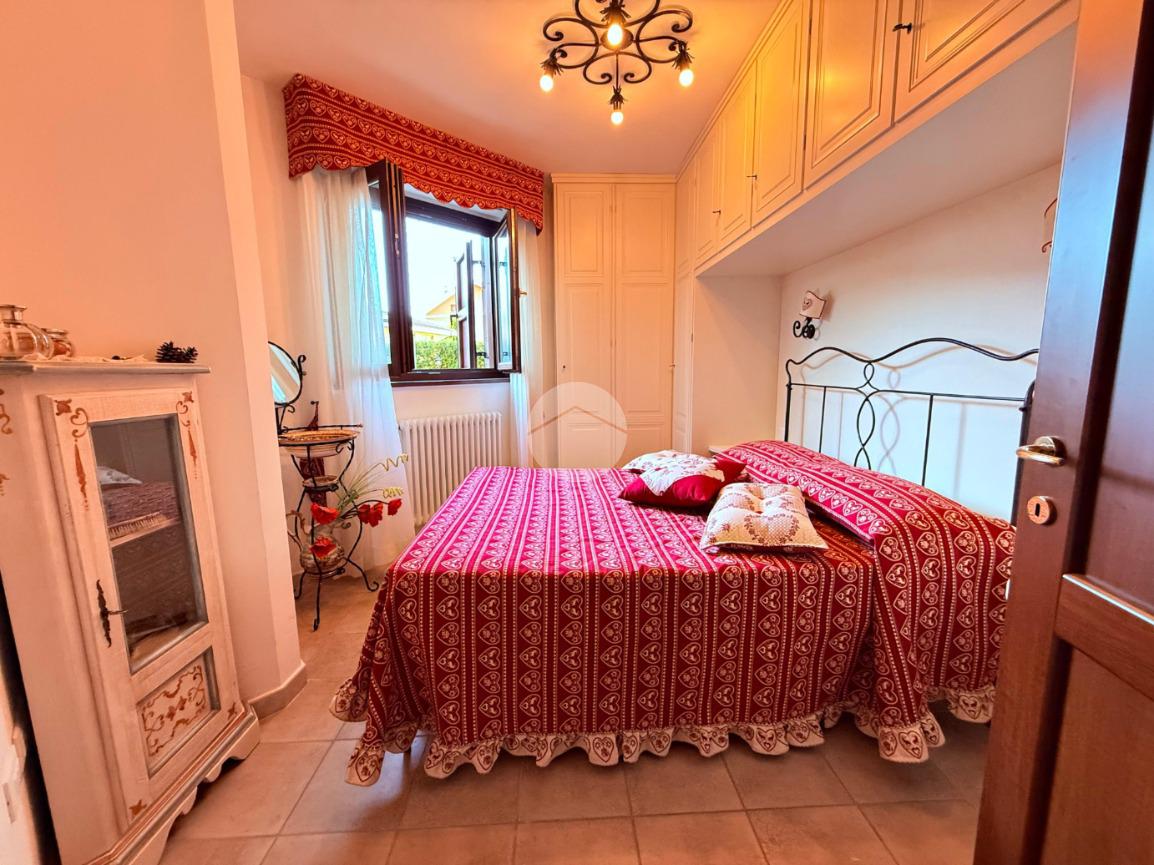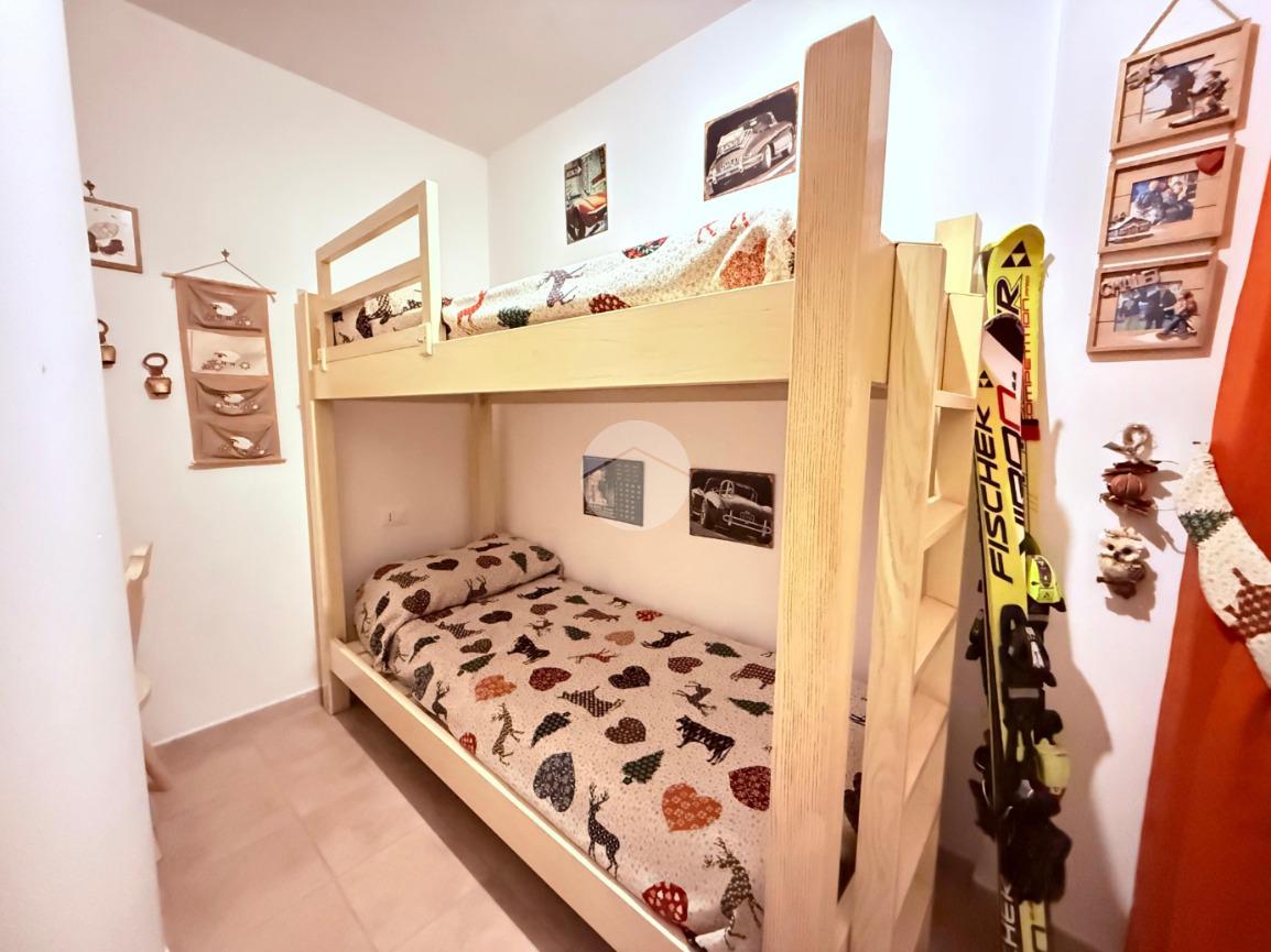 La soluzione è così disposta: entrando troviamo una comoda zona giorno open-space con angolo cottura e camino con affaccio su giardino di 200 mq disposto a sud est, proseguendo una camera da letto matrimoniale, una cameretta singola con un letto a castello e un bagno con doccia.