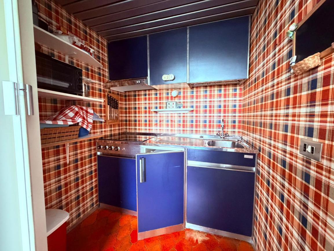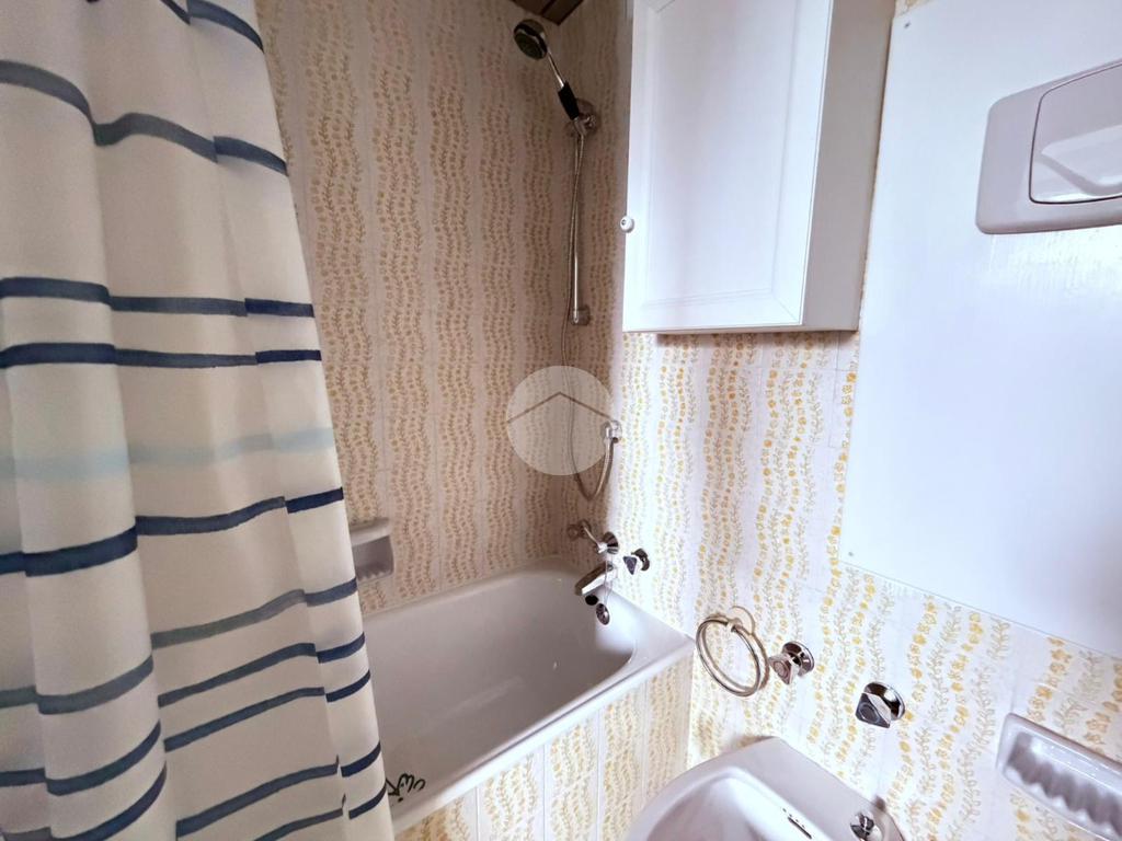 La soluzione è così disposta: entrando troviamo una zona giorno open space con angolo cottura, una camera da letto matrimoniale, una cameretta e un bagno con vasca.