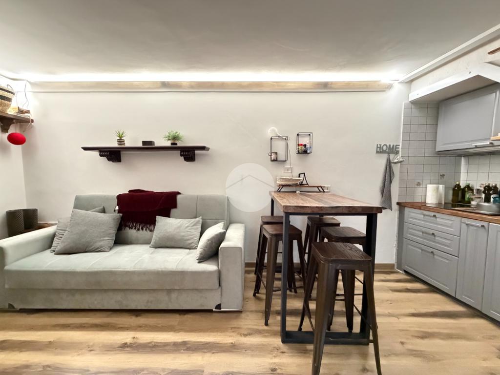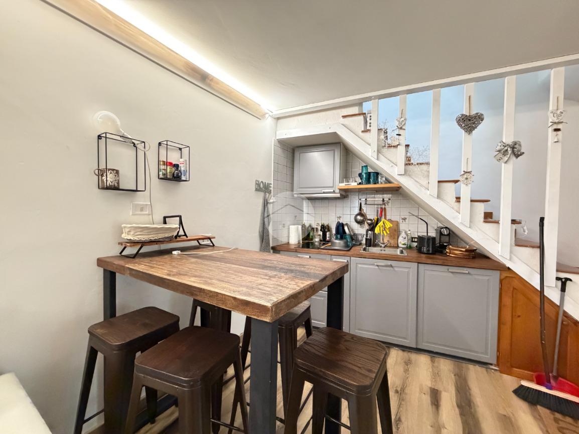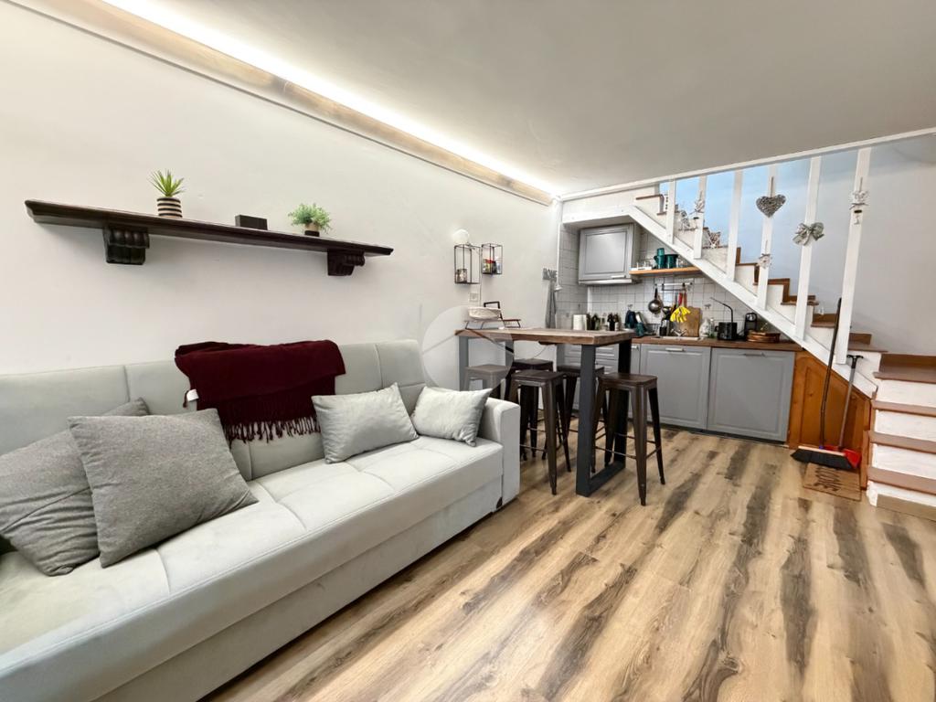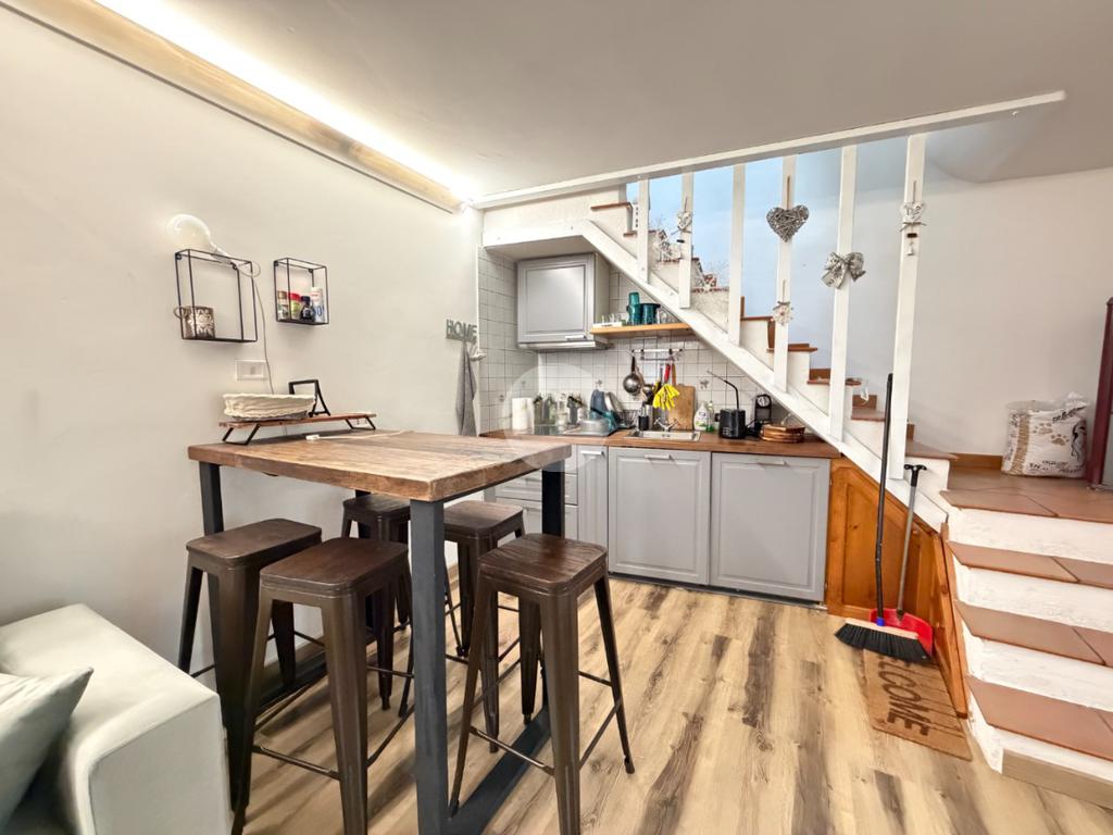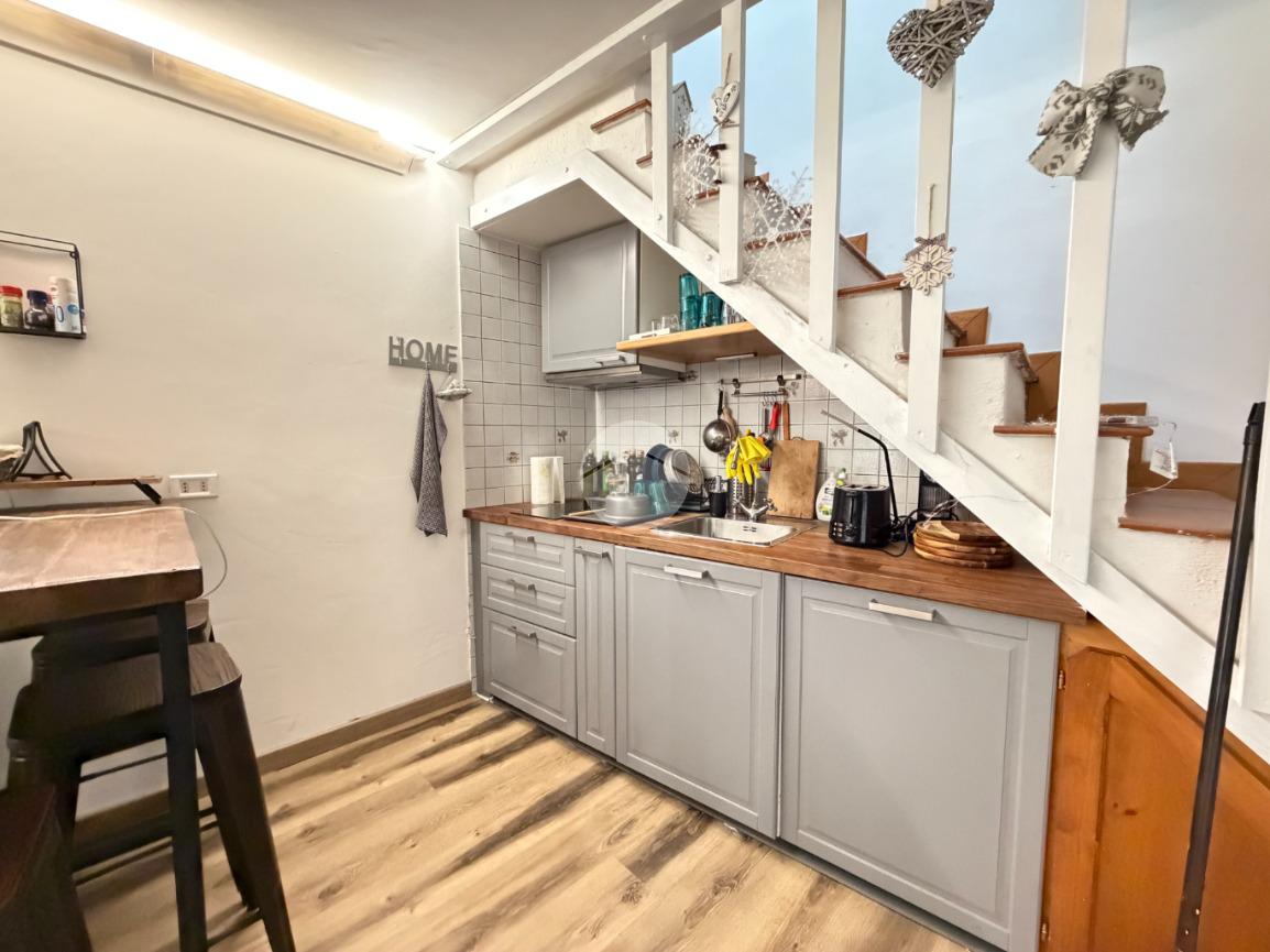 La soluzione è così disposta: entrando troviamo una zona giorno con angolo cottura e camino, salendo al piano superiore una camera da letto matrimoniale e un bagno con doccia. Infine un comodo rustico con camino e bagno.