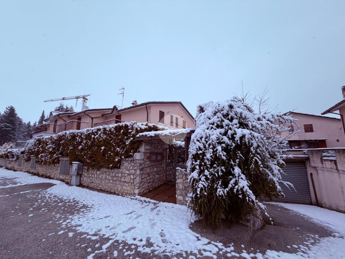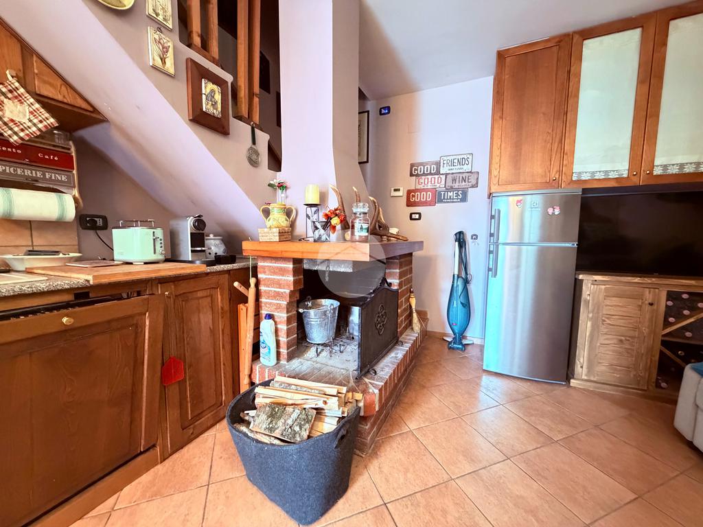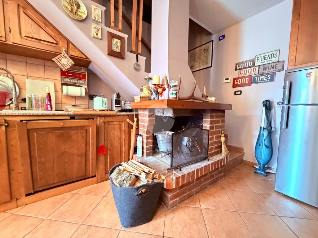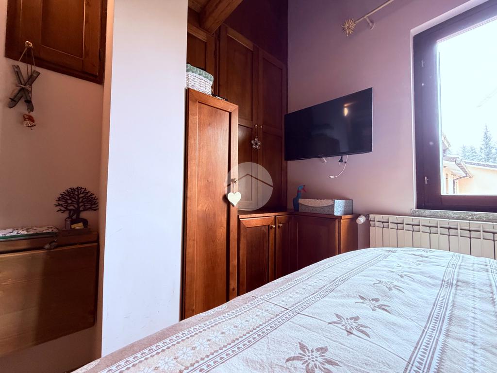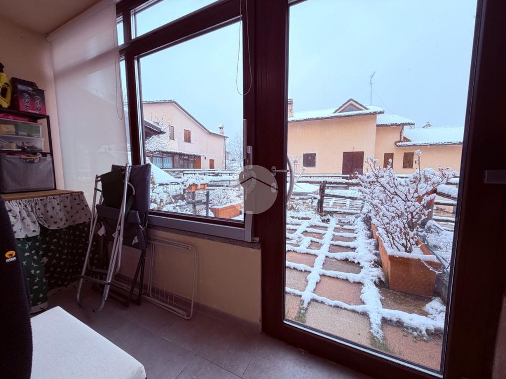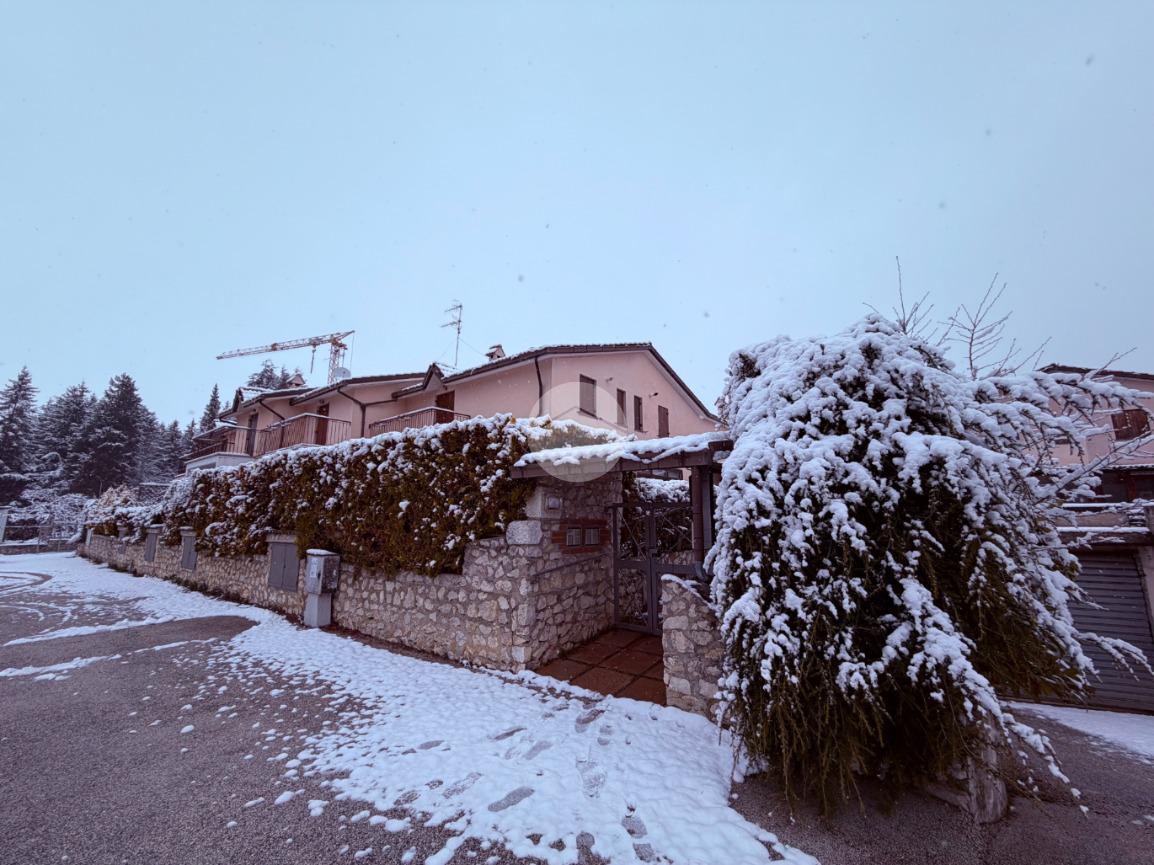 Villetta a schiera su due livelli nel cuore di Rocca di Mezzo, a pochi passi dalle principali attrazioni e dai servizi del paese, ideale come casa vacanze o investimento. L’abitazione si apre al piano terra con una luminosa veranda dotata di vetrate scorrevoli, attualmente adibita a pratica zona lavanderia. Da qui si accede a un’accogliente zona giorno open space con angolo cottura completo di elettrodomestici (frigorifero, forno e lavastoviglie) e caratteristico camino angolare. Presente anche un comodo divano letto matrimoniale. Al piano superiore si sviluppa la zona notte, composta da una camera matrimoniale e un bagno finestrato con doccia. Di particolare pregio la porta artigianale in legno con carrucola decorativa, elemento unico che dona personalità all’ambiente. Completa la proprietà un funzionale sottotetto, accessibile tramite scala telescopica. L’immobile è rifinito con materiali di qualità, tra cui porte in legno di abete e armadiature a muro su misura, ed è dotato di porta d’ingresso blindata e cassaforte. Dal punto di vista impiantistico dispone di impianto elettrico nuovo e certificato, caldaia a condensazione, impianto satellitare e allaccio alla fibra. All’esterno, un giardino privato di circa 16 mq . Completano la proprietà un posto auto assegnato all’interno del garage condominiale e una cantina.
