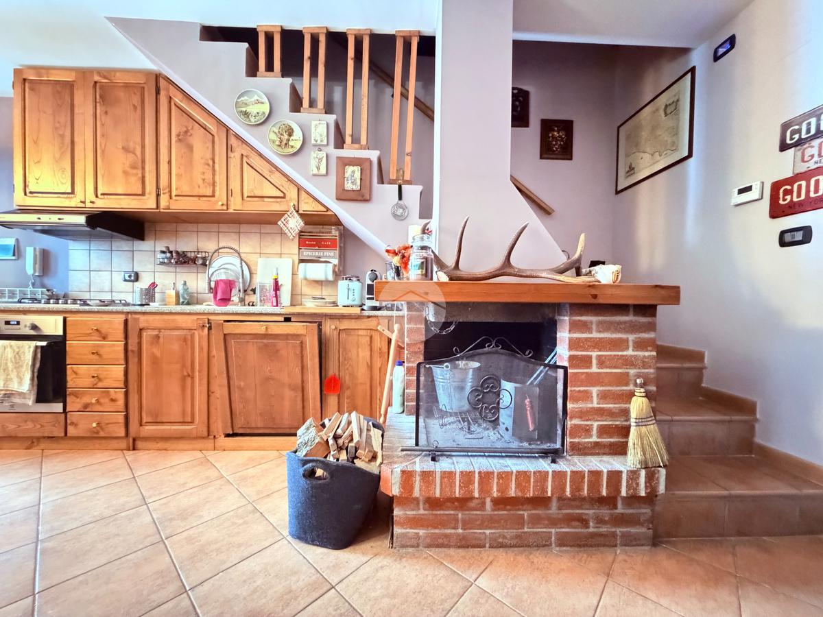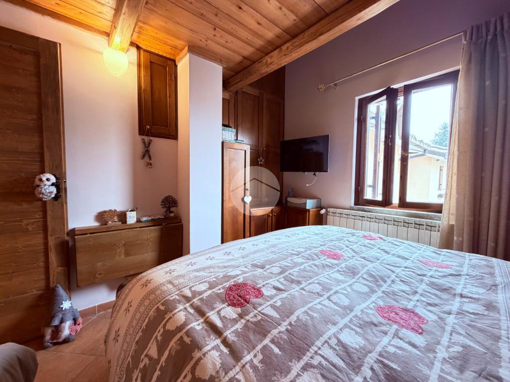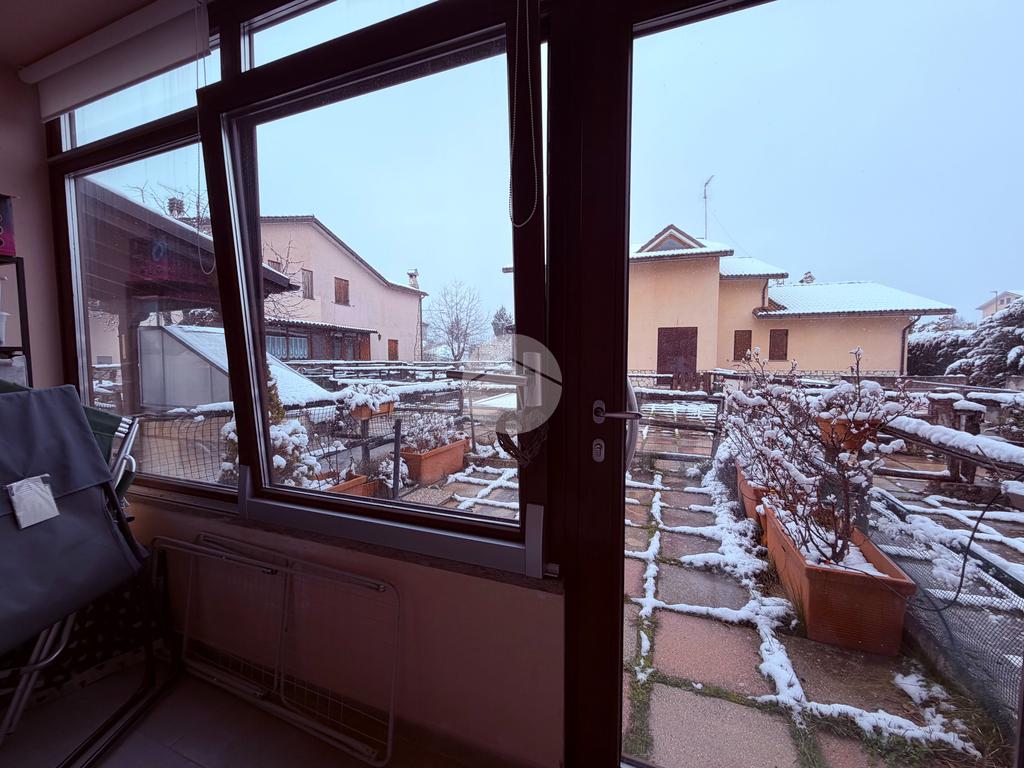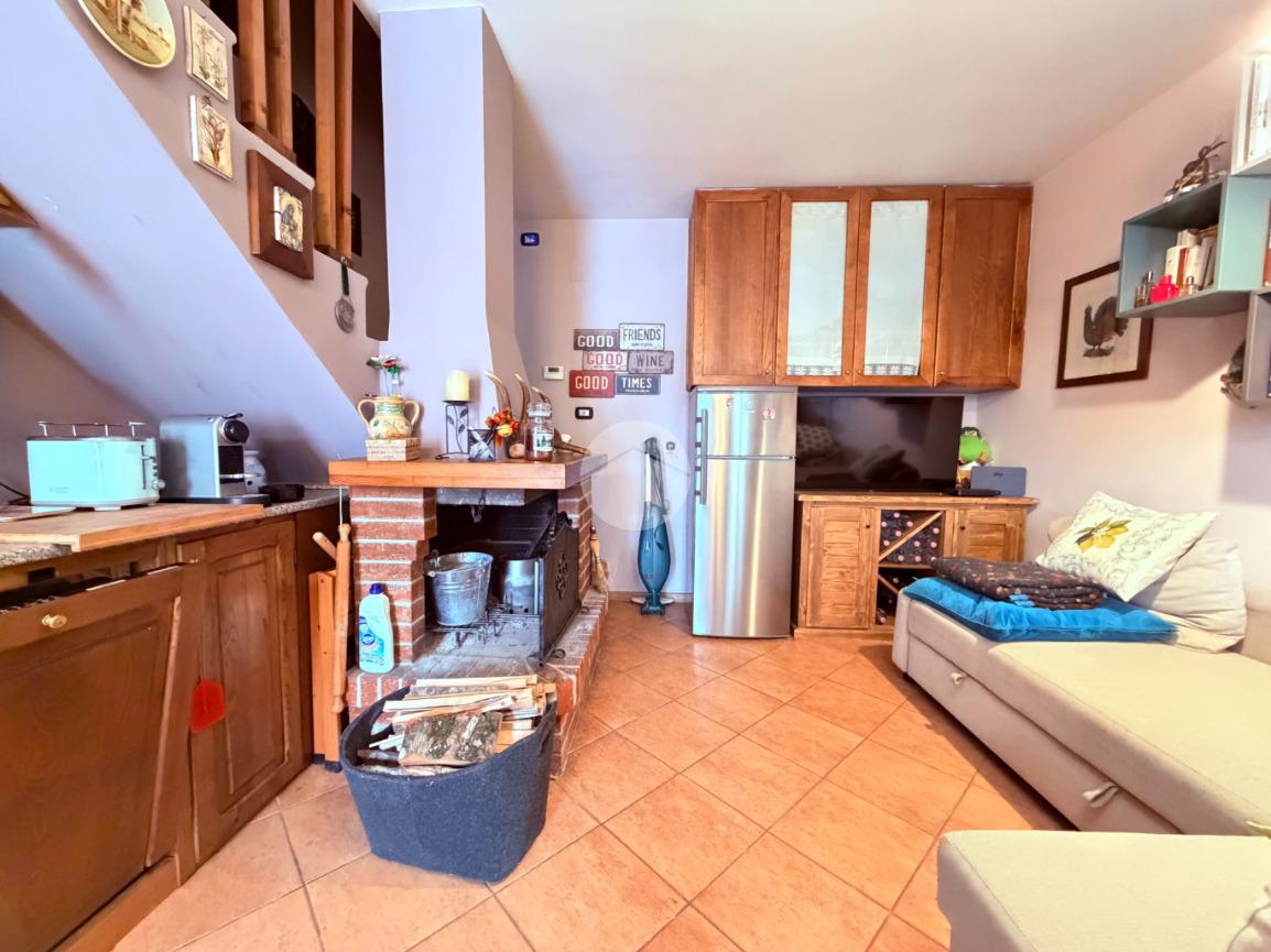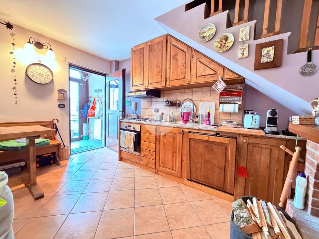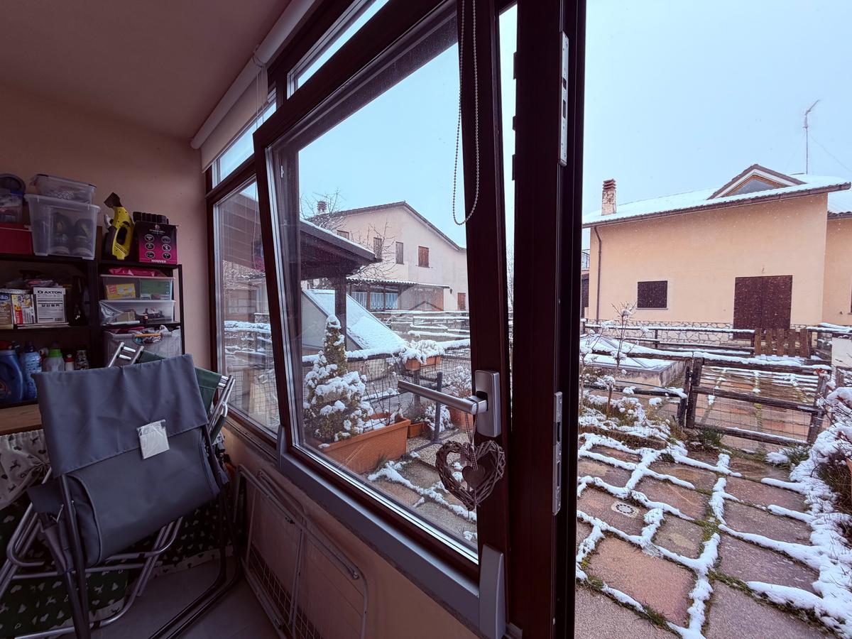 Villetta a schiera su due livelli nel cuore di Rocca di Mezzo, a pochi passi dalle principali attrazioni e dai servizi del paese, ideale come casa vacanze o investimento. L’abitazione si apre al piano terra con una luminosa veranda dotata di vetrate scorrevoli, attualmente adibita a pratica zona lavanderia. Da qui si accede a un’accogliente zona giorno open space con angolo cottura completo di elettrodomestici (frigorifero, forno e lavastoviglie) e caratteristico camino angolare. Presente anche un comodo divano letto matrimoniale. Al piano superiore si sviluppa la zona notte, composta da una camera matrimoniale e un bagno finestrato con doccia. Di particolare pregio la porta artigianale in legno con carrucola decorativa, elemento unico che dona personalità all’ambiente. Completa la proprietà un funzionale sottotetto, accessibile tramite scala telescopica. L’immobile è rifinito con materiali di qualità, tra cui porte in legno di abete e armadiature a muro su misura, ed è dotato di porta d’ingresso blindata e cassaforte. Dal punto di vista impiantistico dispone di impianto elettrico nuovo e certificato, caldaia a condensazione, impianto satellitare e allaccio alla fibra. All’esterno, un giardino privato di circa 16 mq . Completano la proprietà un posto auto assegnato all’interno del garage condominiale e una cantina.