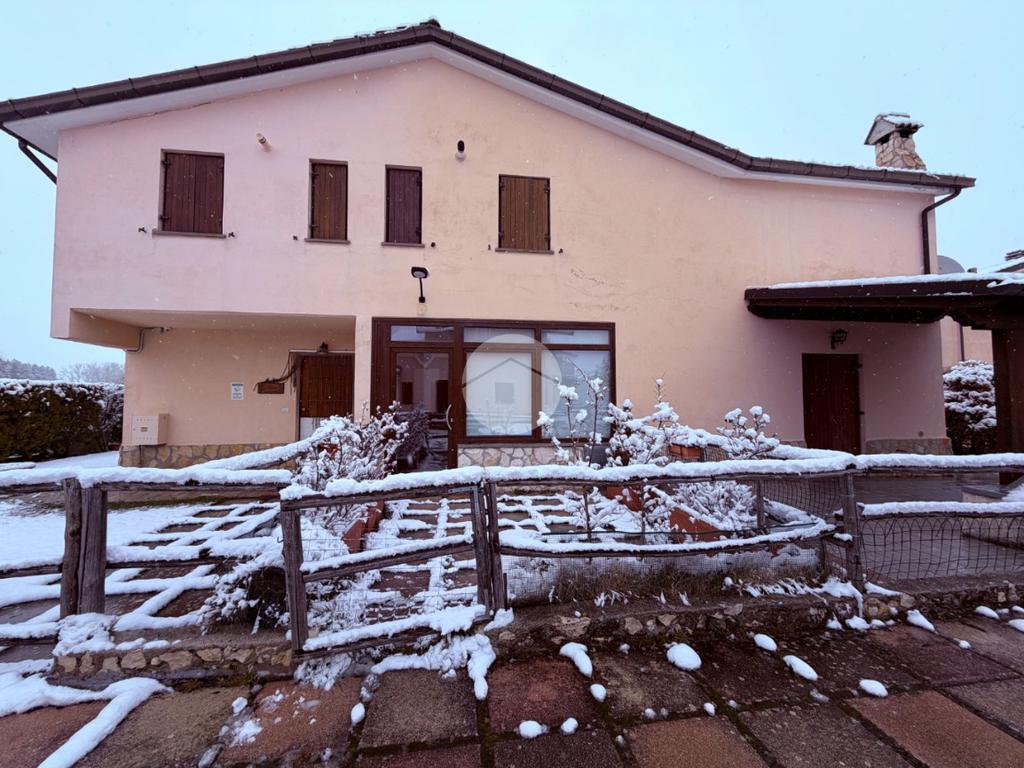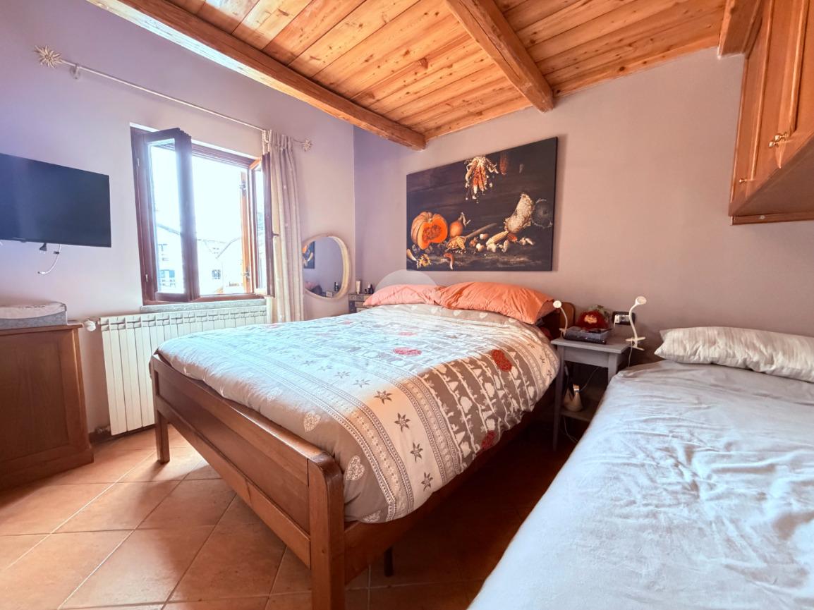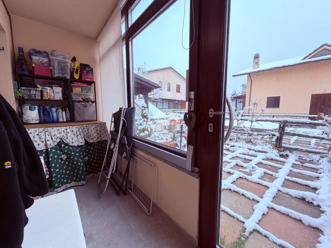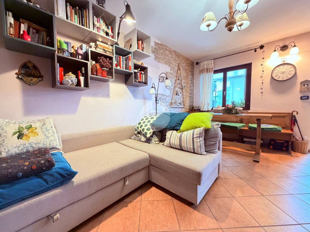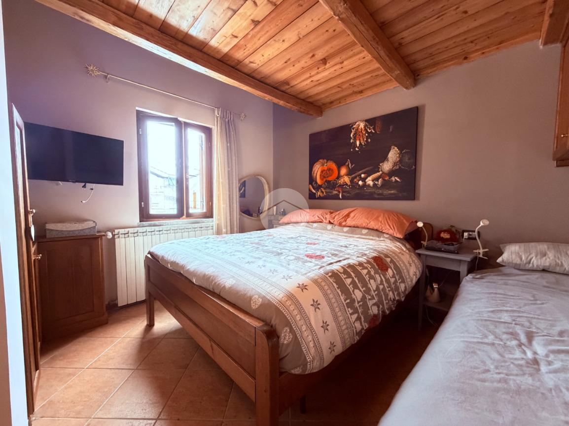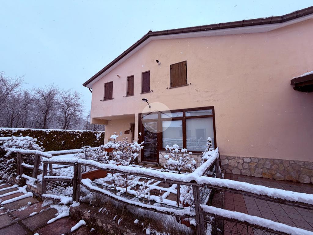Villetta a schiera su due livelli nel cuore di Rocca di Mezzo, a pochi passi dalle principali attrazioni e dai servizi del paese, ideale come casa vacanze o investimento. L’abitazione si apre al piano terra con una luminosa veranda dotata di vetrate scorrevoli, attualmente adibita a pratica zona lavanderia. Da qui si accede a un’accogliente zona giorno open space con angolo cottura completo di elettrodomestici (frigorifero, forno e lavastoviglie) e caratteristico camino angolare. Presente anche un comodo divano letto matrimoniale. Al piano superiore si sviluppa la zona notte, composta da una camera matrimoniale e un bagno finestrato con doccia. Di particolare pregio la porta artigianale in legno con carrucola decorativa, elemento unico che dona personalità all’ambiente. Completa la proprietà un funzionale sottotetto, accessibile tramite scala telescopica. L’immobile è rifinito con materiali di qualità, tra cui porte in legno di abete e armadiature a muro su misura, ed è dotato di porta d’ingresso blindata e cassaforte. Dal punto di vista impiantistico dispone di impianto elettrico nuovo e certificato, caldaia a condensazione, impianto satellitare e allaccio alla fibra. All’esterno, un giardino privato di circa 16 mq . Completano la proprietà un posto auto assegnato all’interno del garage condominiale e una cantina.