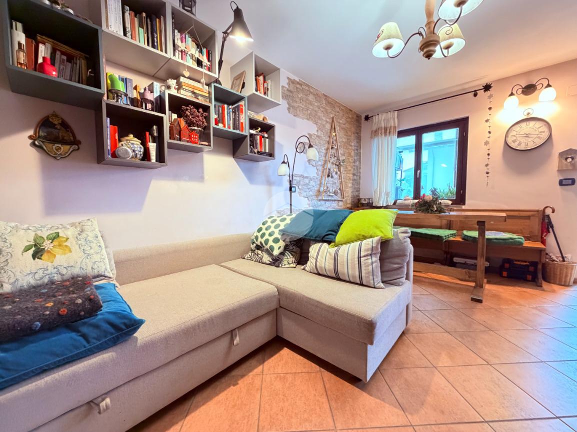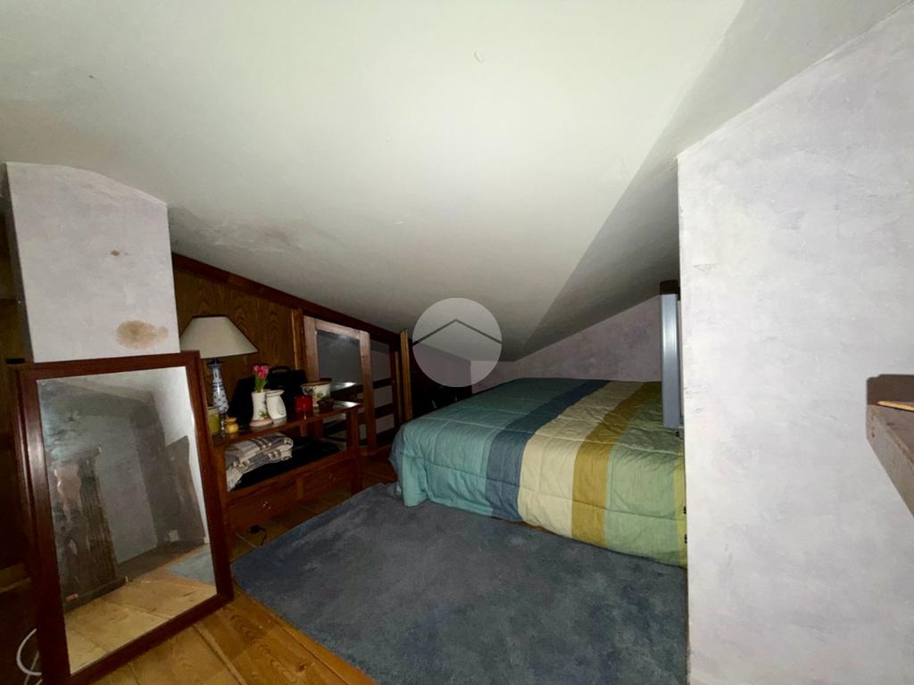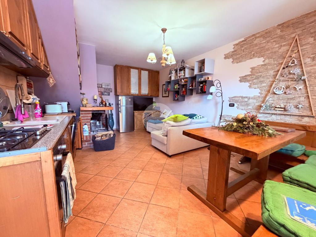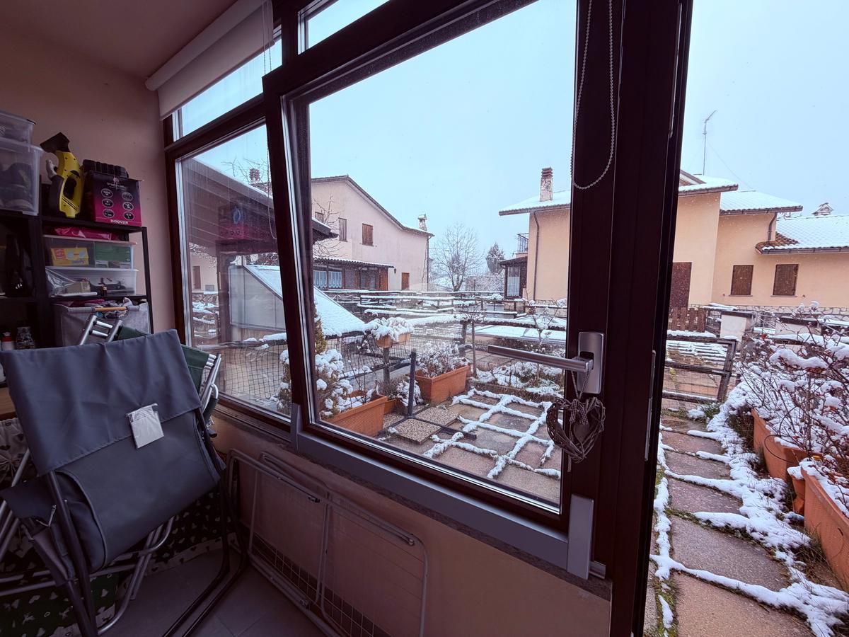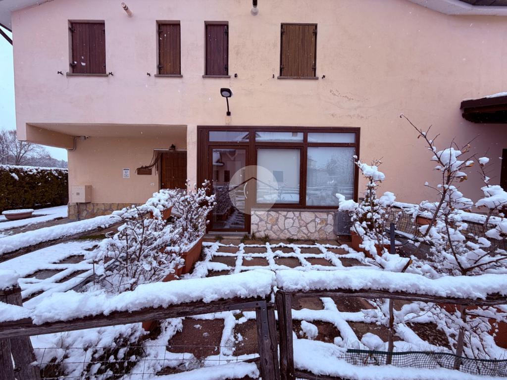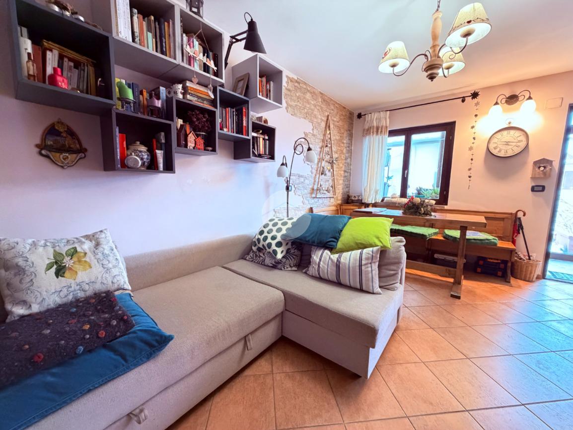 Villetta a schiera su due livelli nel cuore di Rocca di Mezzo, a pochi passi dalle principali attrazioni e dai servizi del paese, ideale come casa vacanze o investimento. L’abitazione si apre al piano terra con una luminosa veranda dotata di vetrate scorrevoli, attualmente adibita a pratica zona lavanderia. Da qui si accede a un’accogliente zona giorno open space con angolo cottura completo di elettrodomestici (frigorifero, forno e lavastoviglie) e caratteristico camino angolare. Presente anche un comodo divano letto matrimoniale. Al piano superiore si sviluppa la zona notte, composta da una camera matrimoniale e un bagno finestrato con doccia. Di particolare pregio la porta artigianale in legno con carrucola decorativa, elemento unico che dona personalità all’ambiente. Completa la proprietà un funzionale sottotetto, accessibile tramite scala telescopica. L’immobile è rifinito con materiali di qualità, tra cui porte in legno di abete e armadiature a muro su misura, ed è dotato di porta d’ingresso blindata e cassaforte. Dal punto di vista impiantistico dispone di impianto elettrico nuovo e certificato, caldaia a condensazione, impianto satellitare e allaccio alla fibra. All’esterno, un giardino privato di circa 16 mq . Completano la proprietà un posto auto assegnato all’interno del garage condominiale e una cantina.