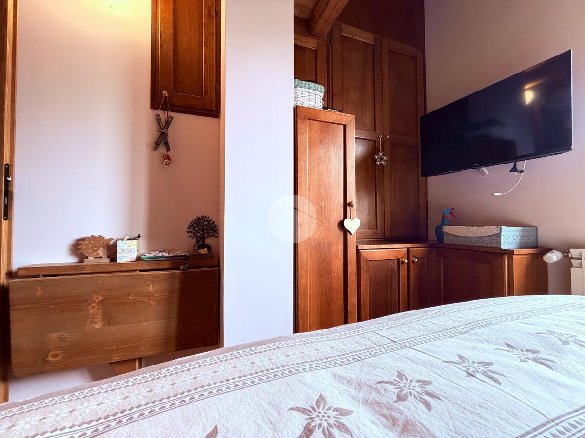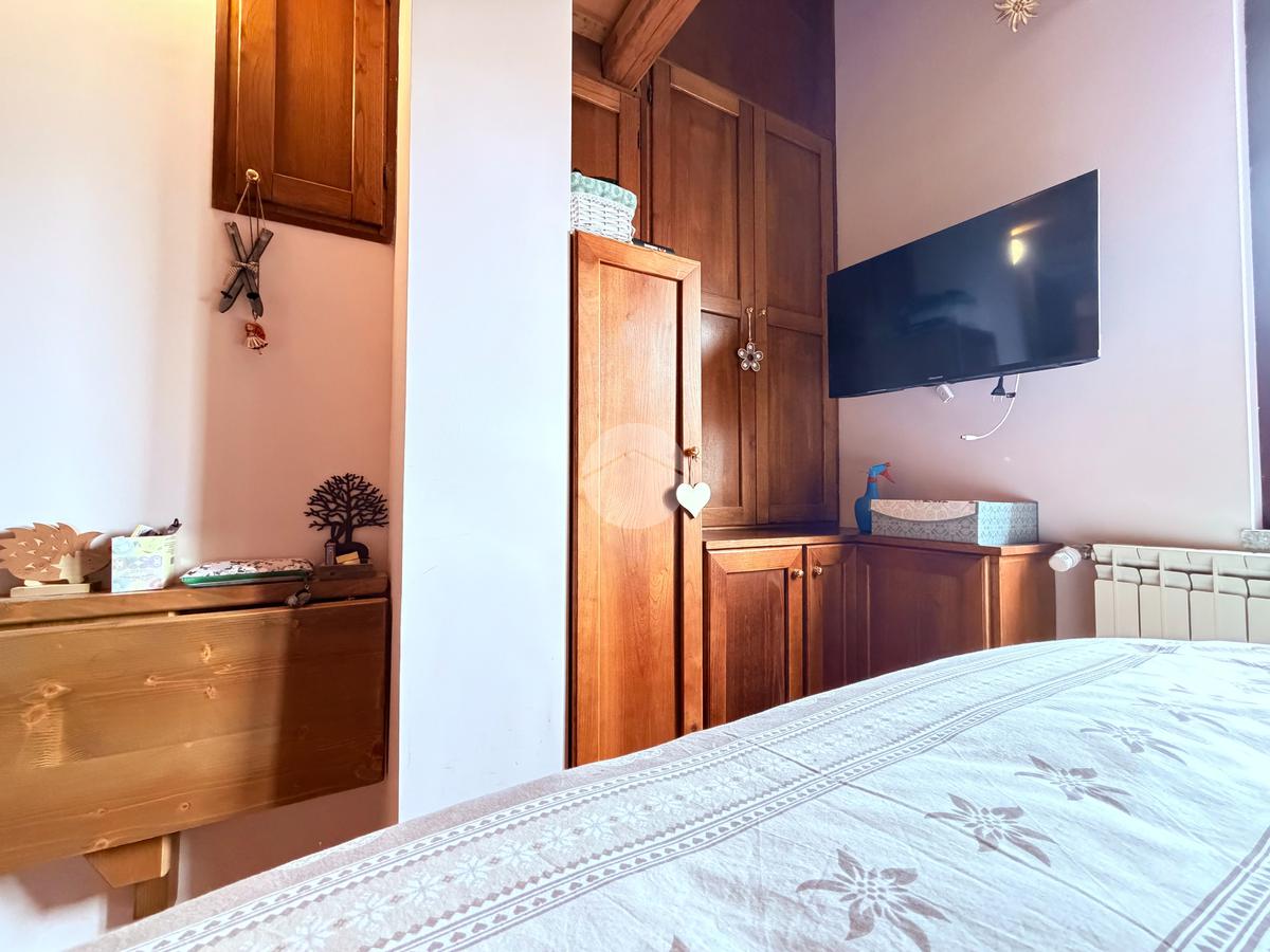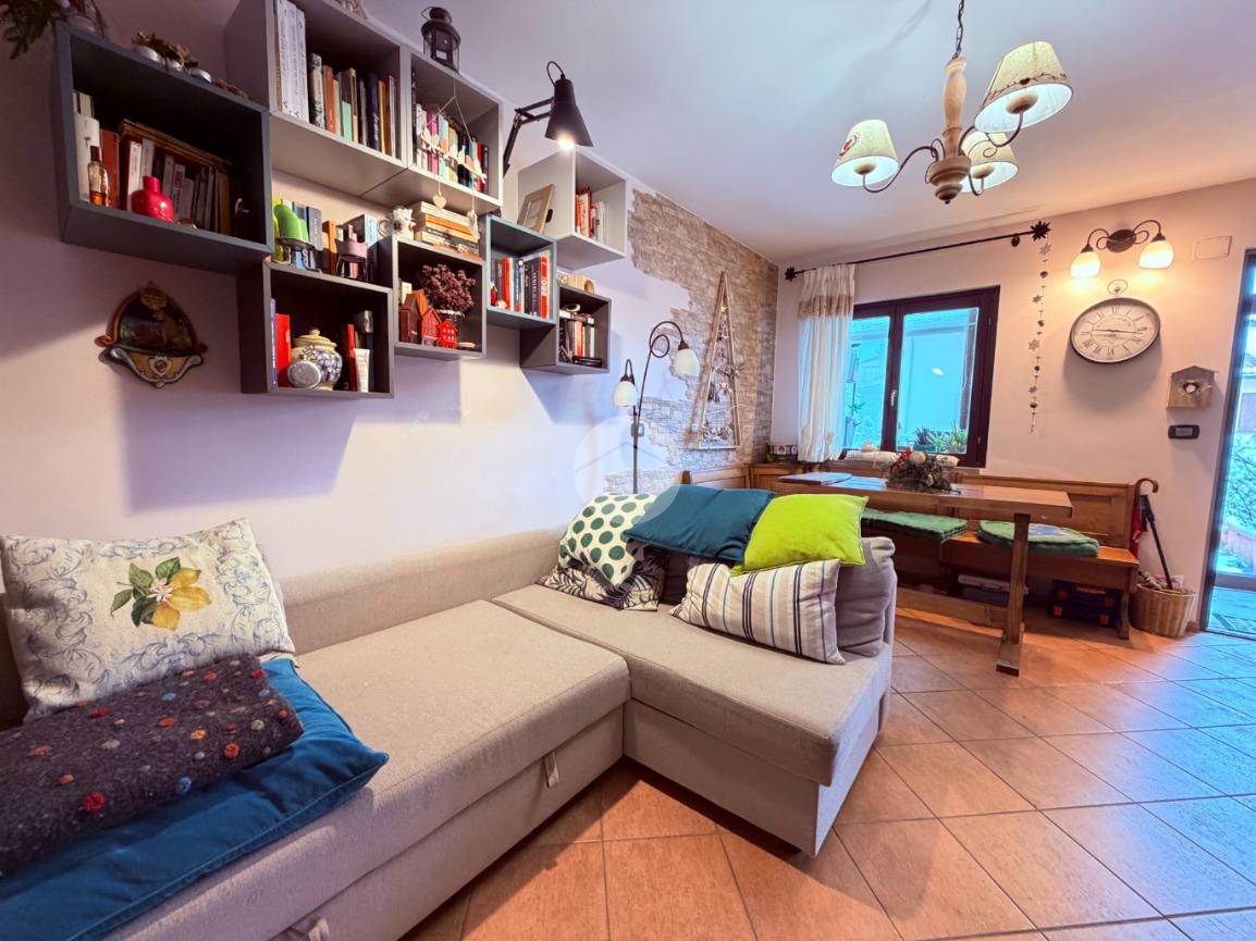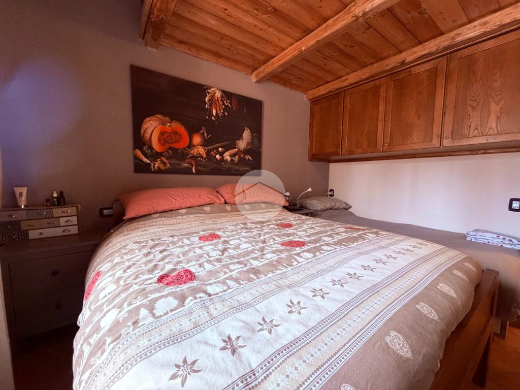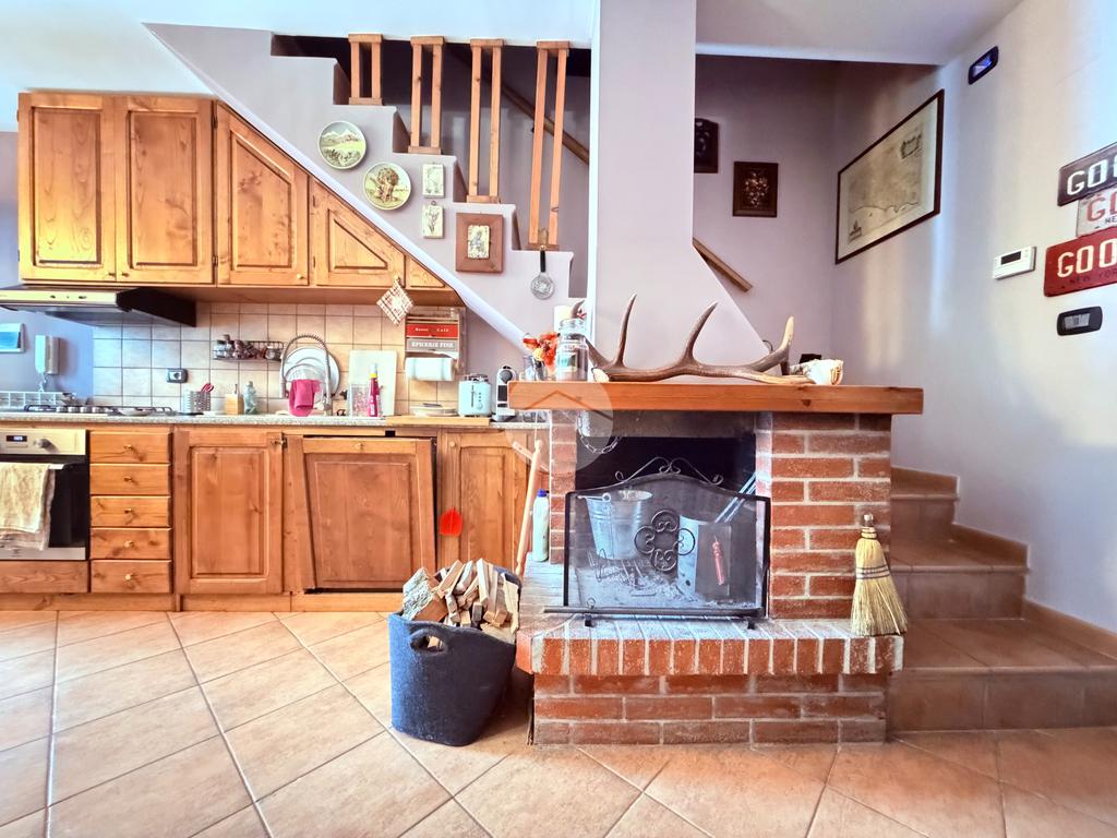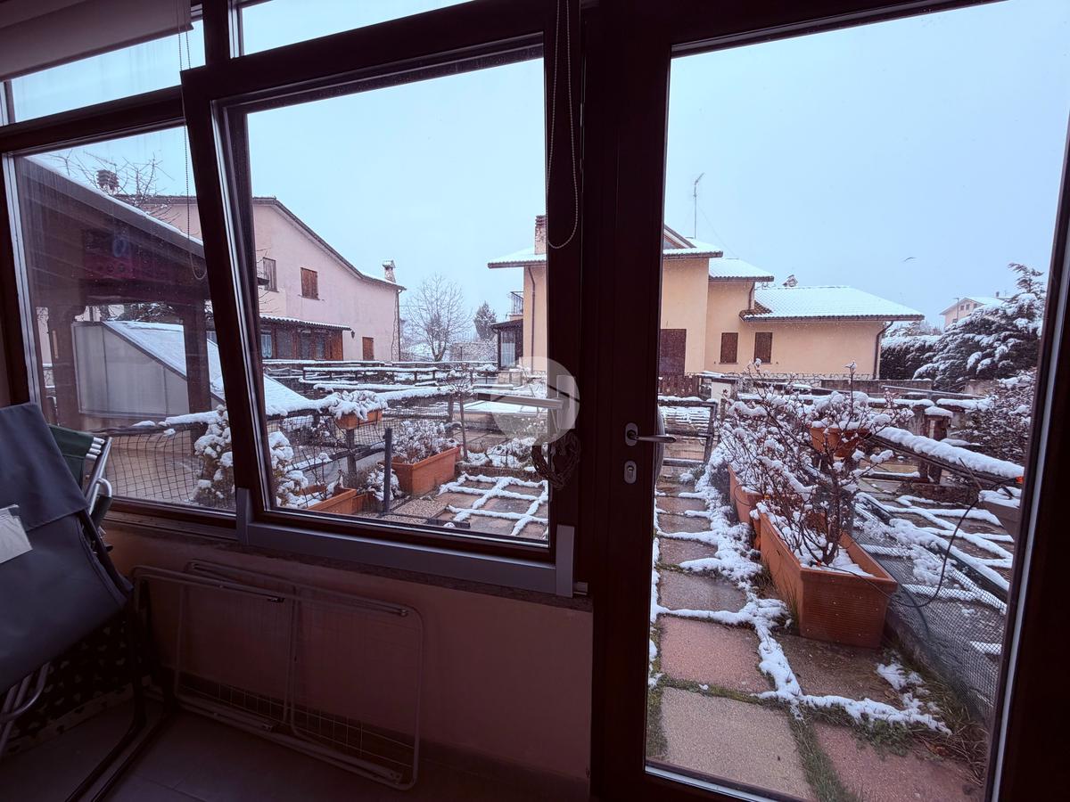 Villetta a schiera su due livelli nel cuore di Rocca di Mezzo, a pochi passi dalle principali attrazioni e dai servizi del paese, ideale come casa vacanze o investimento. L’abitazione si apre al piano terra con una luminosa veranda dotata di vetrate scorrevoli, attualmente adibita a pratica zona lavanderia. Da qui si accede a un’accogliente zona giorno open space con angolo cottura completo di elettrodomestici (frigorifero, forno e lavastoviglie) e caratteristico camino angolare. Presente anche un comodo divano letto matrimoniale. Al piano superiore si sviluppa la zona notte, composta da una camera matrimoniale e un bagno finestrato con doccia. Di particolare pregio la porta artigianale in legno con carrucola decorativa, elemento unico che dona personalità all’ambiente. Completa la proprietà un funzionale sottotetto, accessibile tramite scala telescopica. L’immobile è rifinito con materiali di qualità, tra cui porte in legno di abete e armadiature a muro su misura, ed è dotato di porta d’ingresso blindata e cassaforte. Dal punto di vista impiantistico dispone di impianto elettrico nuovo e certificato, caldaia a condensazione, impianto satellitare e allaccio alla fibra. All’esterno, un giardino privato di circa 16 mq . Completano la proprietà un posto auto assegnato all’interno del garage condominiale e una cantina.